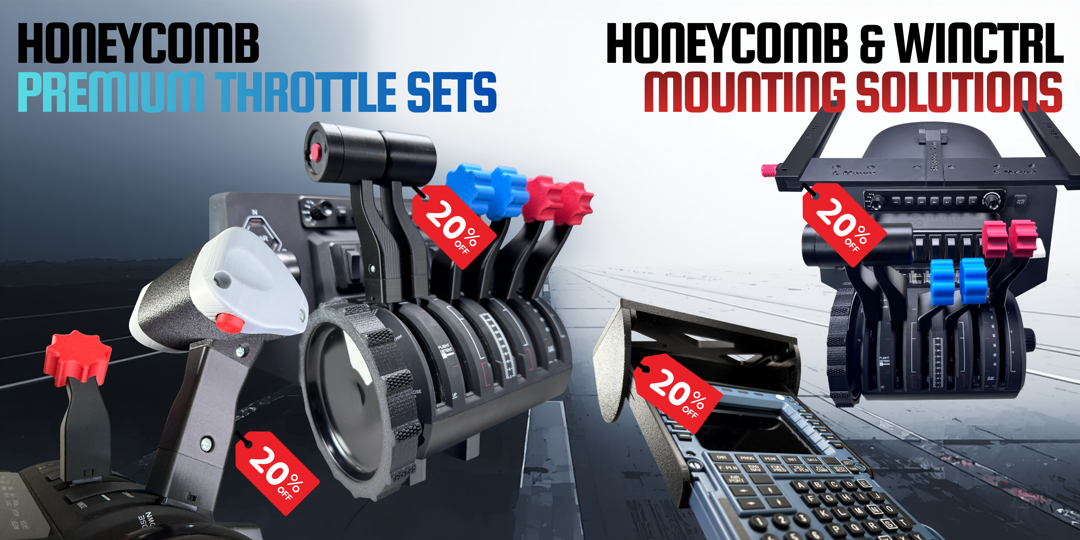 YourFlightSim designs premium mounting solutions and throttle sets for serious flight sim enthusiasts. Specializing in Honeycomb and WinCtrl hardware, our products create a clean, immersive cockpit setup without sacrificing durability or ease of use. The goal is simple: streamline your workspace and make your sim feel as close to the real thing as possible...because your desk shouldn’t look like turbulence at FL350.